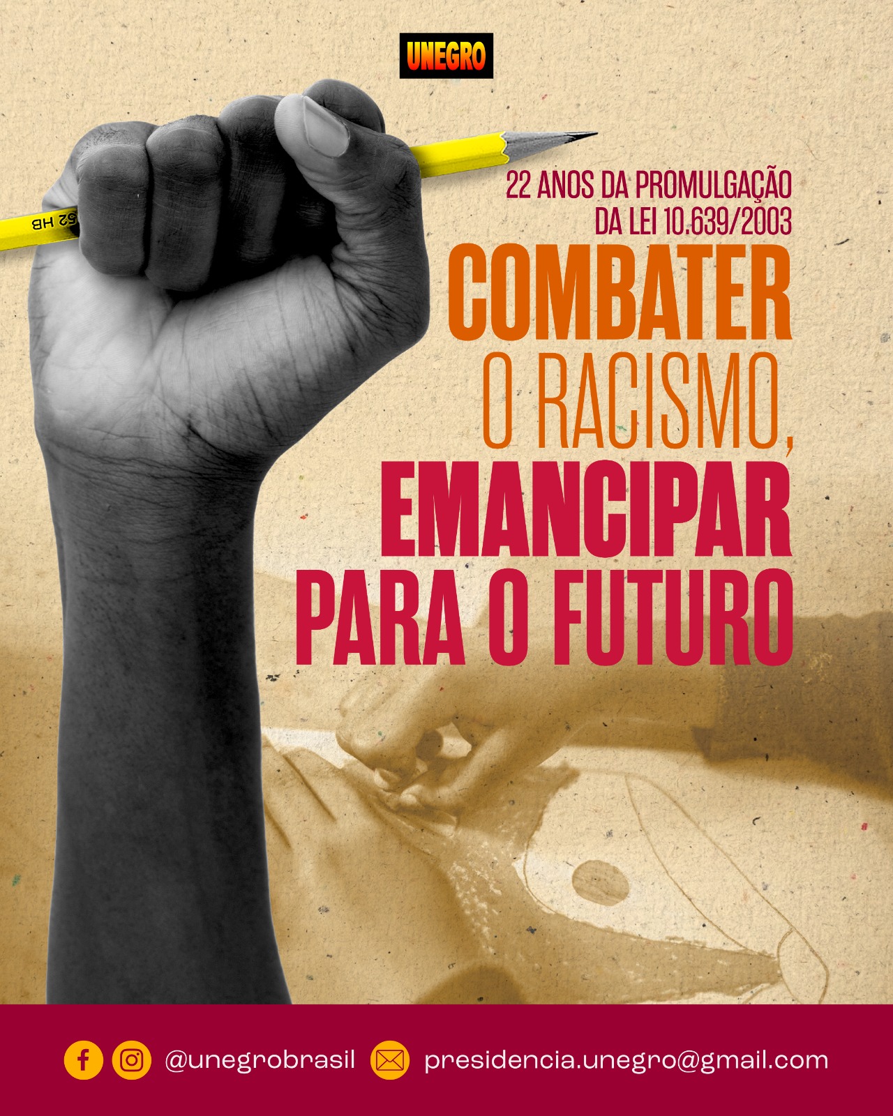 A educação é uma arma poderosa contra o racismo. Continuaremos organizados, vigilantes e comprometidos para que a Lei 10.639/03 seja um instrumento de transformação social nas escolas, nas ruas e nas mentes de todos os brasileiros e brasileiras.